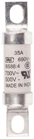 This is 35A FE FF British Standard Fuse 690V manufactured by Cooper Bussmann. The manufacturer part number is 35FE. Concerning body diameter, it is 17.1mm. The product has a current rating of 35 a. Moreover, the product has a nominal 690 v voltage rating. It has a typical 63.5mm fixing centres . A fuse with a fe size. Its tag is 12.7mm wide . The fuse has a robust ff speed. Its body height is 48mm. The fuse complies with bs 88, iec 269-4 standards. Moreover, it has a high rupture capacity yes . It has an overall length of 77mm.