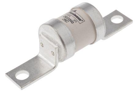 This is 200A A4 British Standard Fuse gG 415V ac manufactured by Cooper Bussmann. The manufacturer part number is DEO200. Concerning body diameter, it is 29.5mm. The product has a gg application category. The product has a current rating of 200 a. Moreover, the product has a nominal 415 v ac voltage rating. It has a typical 93.7mm fixing centres . A fuse with a a4 size. Its tag is 19mm wide . Moreover, it has a high rupture capacity yes . Its body height is 47mm. The fuse complies with bs 88, iec 269 standards. It has an overall length of 110mm.