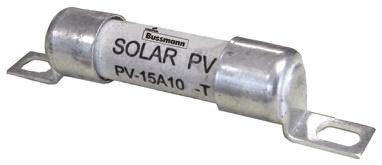 This is 15A Bolt Fixing Photovoltaic Fuse gPV 1000V dc manufactured by Cooper Bussmann. The manufacturer part number is PV-15A10-T. Concerning body diameter, it is 10.4mm. The product has a gpv application category. The product has a current rating of 15 a. Moreover, the product has a nominal 1000 v dc voltage rating. It has a typical 49.7mm fixing centres . It has an overall length of 59.8mm. Its tag is 6.6mm wide . Its body height is 38.5mm. The fuse complies with iec 60269 standards.