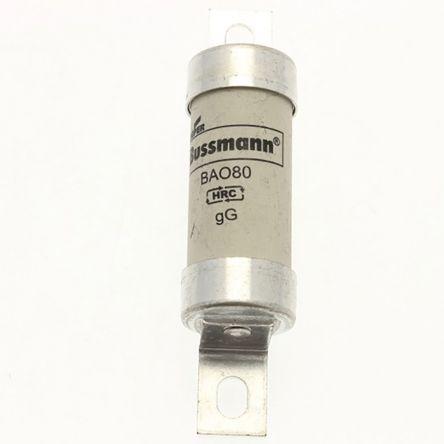 This is 80Amp 500Vac INDUSTRIAL FUSE manufactured by Cooper Bussmann. The manufacturer part number is BAO80. It has a bolted type tag . Concerning body diameter, it is 21mm. The product has a gg application category. The product has a current rating of 80 a. Moreover, the product has a nominal 550 v ac voltage rating. The product bao, is a highly preferred choice for users. A fuse with a a3 size. It has a typical 73mm fixing centres . It has an overall length of 87mm. Moreover, its tag orientation is offset . The fuse complies with bs88, iec 60269 standards.