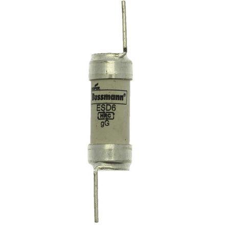 This is 6AMP 550V AC INDUSTRIAL manufactured by Cooper Bussmann. The manufacturer part number is ESD6. It has a bladed type tag . Concerning body diameter, it is 13.8mm. The product has a gg application category. The product has a current rating of 6 a. The fuse dimensions of the product is 13.8 (dia.) x 35.5mm . Moreover, the product has a nominal 550 v ac voltage rating. The product esd, is a highly preferred choice for users. A fuse with a f2 size. Its tag is 1.2mm wide . Moreover, its tag orientation is offset . Its body length is 35.5mm. The fuse complies with bs88, iec 60269 standards. It has an overall length of 68mm.