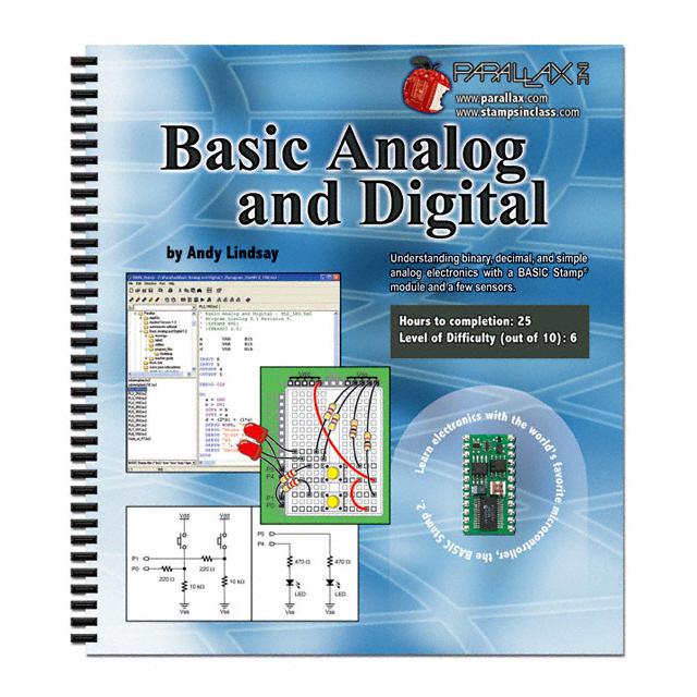 This is manufactured by Parallax Inc.. The manufacturer part number is 28129. Publisher Info: parallax inc.. The product has an ISBN 1-928982-04-2. It is assigned with possible HTSUS value of 4901.99.0050. Title: basic analog and digital. It is shipped in bulk package . Author(s): andy lindsay. Its typical moisture sensitivity level is 1 (unlimited). The product is not applicable. It comes in book configuration. The product is designated with the ear99 code number.