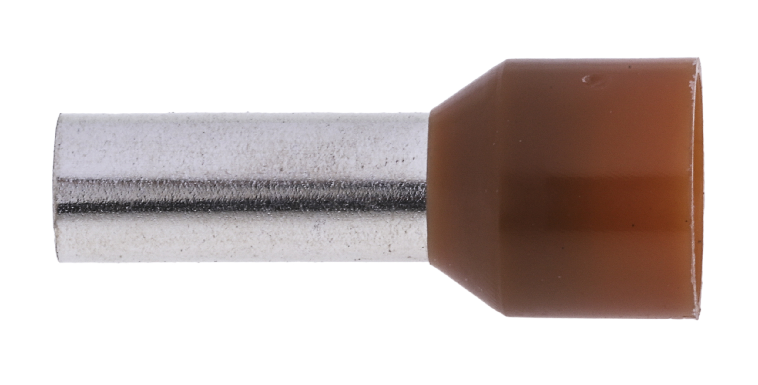 This is Insulated Crimp Bootlace Ferrule 12mm Pin Length 4.9mm Pin Diameter 10mm² Wire Size Brown manufactured by RS Pro. The manufacturer part number is 157-1244. The wire has a maximum size of 10mm². The pin is 12mm long. It has a decent brown colour. The high-quality tin is used as contact plating material. It has 1 dedicated entries . It has a robust nylon insulation material. It has an overall length of 22mm. Insulation Option: insulated. The pin has 4.5 mm, 4.9mm caliber. Its maximum wires size includes 8awg. The product is made from sturdy copper materials.