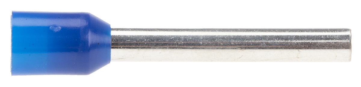 This is Insulated Crimp Bootlace Ferrule 18mm Pin Length 2.6mm Pin Diameter 2.5mm² Wire Size Blue manufactured by RS Pro. The manufacturer part number is 311-7943. The pin is 18mm long. It has a decent blue colour. While the minimum wire size AWG includes 14awg. It has 1 dedicated entries . It has a robust nylon insulation material. It has an overall length of 25.4mm. Insulation Option: insulated. The pin has 2.2 mm, 2.5mm caliber. On the other hand, the wire has 2.5mm² of minimum size. Its maximum wires size includes 14awg. The wire has a maximum size of 2.5mm².