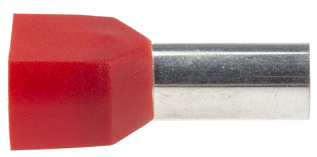 This is Insulated Crimp Bootlace Ferrule 14mm Pin Length 6.5mm Pin Diameter 2 x 10mm² Wire Size Red manufactured by RS Pro. The manufacturer part number is 311-8019. The pin is 14mm long. It has a decent red colour. It has 2 dedicated entries . It has a robust nylon insulation material. It has an overall length of 26.6mm. Insulation Option: insulated. The pin has 6.5mm caliber. Its maximum wires size includes 2 x 8awg. The wire has a maximum size of 2 x 10mm².