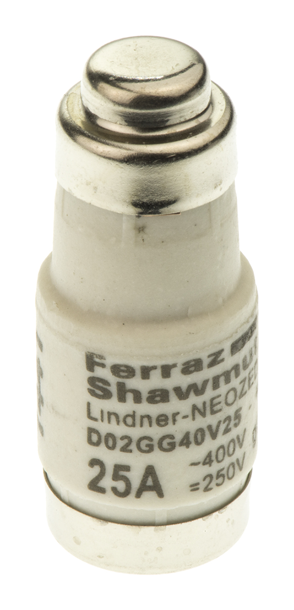 This is 25A D02 Neozed Fuse gG 400V ac manufactured by Mersen. The manufacturer part number is W213160. It has a yellow colour gauge/cap . Its bottle fuse is of d02 size . In addition, it has primary keyword like neozed fuse . Moreover, the product has a nominal 400v ac voltage rating. The product has a gg application category. The product's body is nicely designed from ceramic materials. Whereas, the minimum operating temperature of the product is -40°c. The product has a current rating of 25a. The product has 50 ka @ 500 v ac breaking capacity at maximum voltage rating.