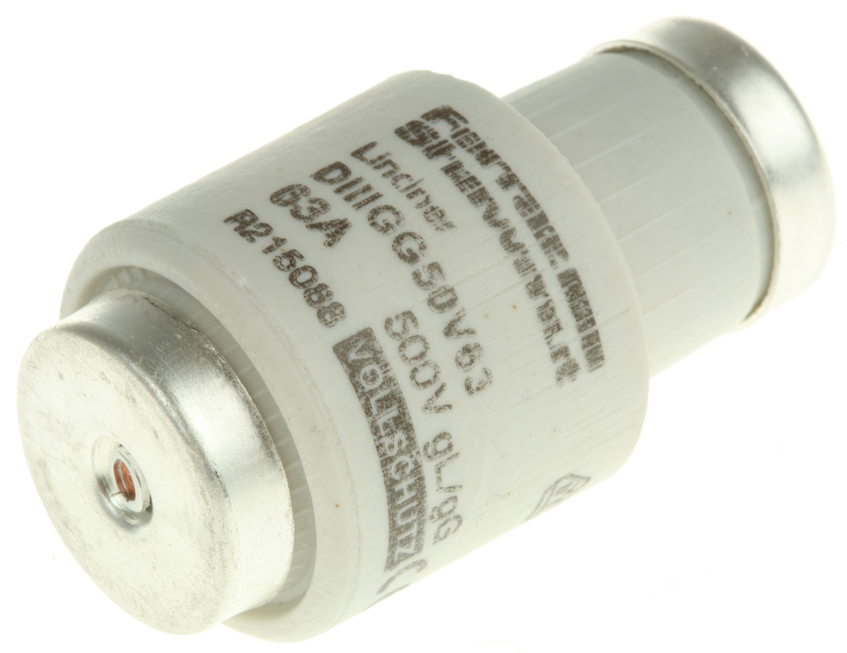 This is 63A DIII Diazed Fuse E33 Thread Size gG 500V manufactured by Mersen. The manufacturer part number is R215088. It has a copper colour gauge/cap . Its bottle fuse is of diii size . In addition, it has primary keyword like diazed fuse . Moreover, the product has a nominal 500v voltage rating. The product has a gg application category. It has a typical thread size of e33. The product's body is nicely designed from ceramic materials. Whereas, the minimum operating temperature of the product is -40°c. The product has a current rating of 63a.