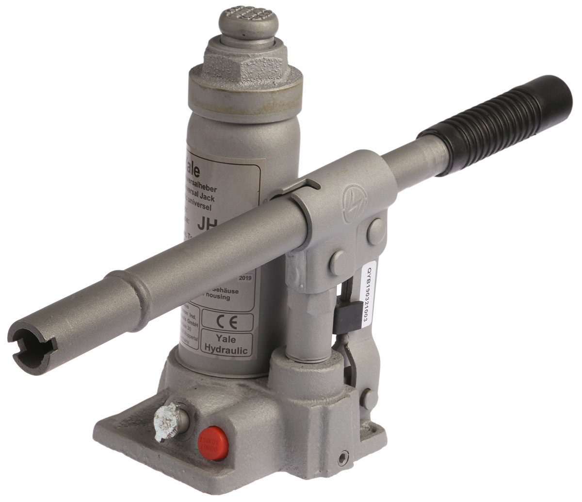 The JH‑2B bottle jack from Yale is built for reliable lifting of heavy loads in workshop and industrial settings. With a rated capacity of 2 tonnes (2,000 kg), it features a closed height of 181 mm and a total maximum height of 346 mm (including a 50 mm screw‑extension) with a lifting stroke of 115 mm. The grooved saddle and wide base plate enhance stability and grip, while the internal pressure‑relief valve and controlled lowering mechanism offer safety during use.