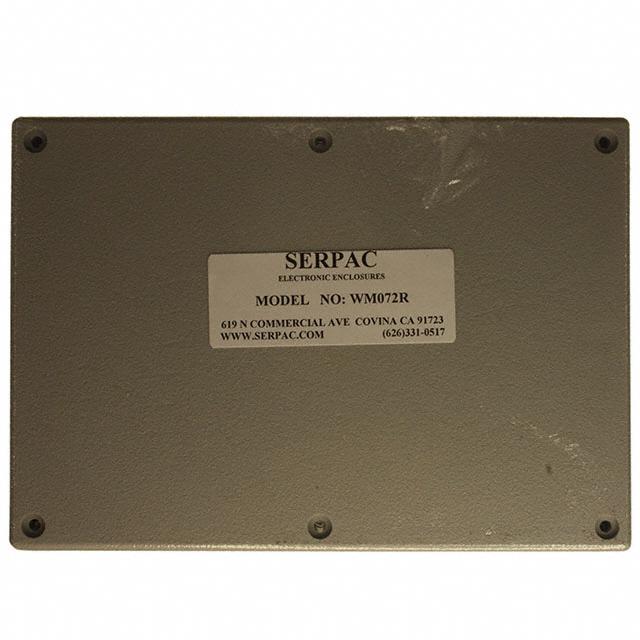 This is manufactured by Serpac. The manufacturer part number is WM072R,GY. It is rated with ip40, nema 1. The product is made from highly stable and reliable plastic, abs. It is assigned with possible HTSUS value of 3923.10.9000. The product is rohs3 compliant. It is 0.100" (2.54mm) thick. Features a typical area dimensions of 33.6in² (217cm²). In addition, it is reach unaffected. A type of box container. It carries ul94 hb of material flammability rating. The product's diameters include 6.880" l x 4.880" w (174.75mm x 123.95mm). It has a long 2 weeks standard lead time. Its typical moisture sensitivity level is not applicable. The splendid features of the product include front access, mounting flange, pcb supports, wall mount. It has a classic gray colour. The product wm, is a highly preferred choice for users. In addition, the height is 1.600" (40.64mm). In addition, bulk is the available packaging type of the product. Design Information: cover included. Moreover, it corresponds to wm072, a base product number of the product. The product is designated with the ear99 code number.