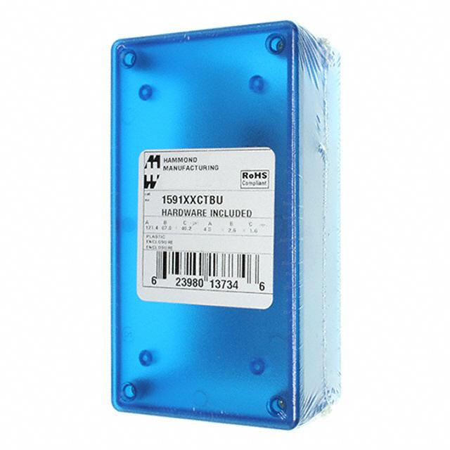 This is manufactured by Hammond Manufacturing. The manufacturer part number is 1591XXCTBU. It is rated with ip54. The product is made from highly stable and reliable plastic. It is assigned with possible HTSUS value of 3923.10.9000. The product is rohs3 compliant. It is 0.079" (2.01mm) thick. Features a typical area dimensions of 12.6in² (81cm²). In addition, it is reach unaffected. A type of box container. The product's diameters include 4.781" l x 2.636" w (121.44mm x 66.95mm). It has a long 4 weeks standard lead time. Shipping Information: shipped from digikey. Its typical moisture sensitivity level is not applicable. The splendid features of the product include flame retardant, pcb supports. It has a classic translucent - blue colour. The product 1591xxt, is a highly preferred choice for users. In addition, the height is 1.644" (41.76mm). In addition, bulk is the available packaging type of the product. Design Information: cover included. Moreover, it corresponds to 1591, a base product number of the product. The product is designated with the ear99 code number.