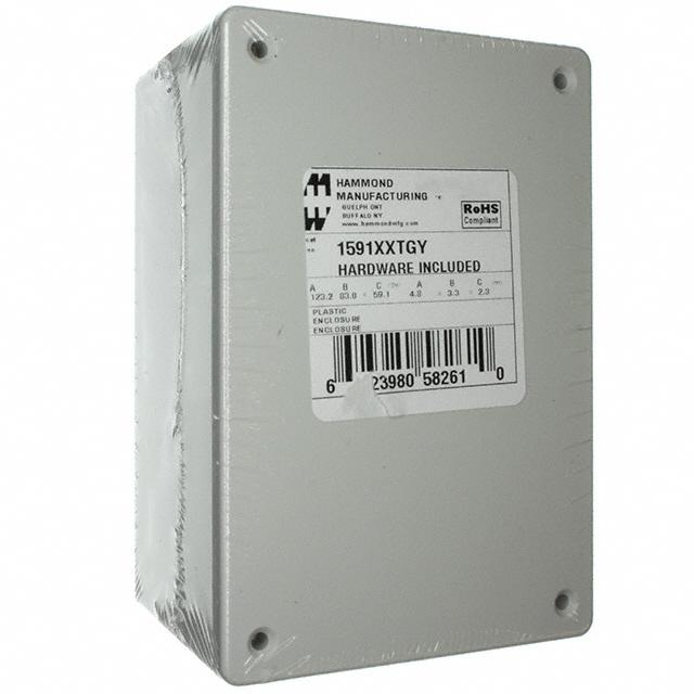 This is manufactured by Hammond Manufacturing. The manufacturer part number is 1591XXTGY. It is rated with ip54. The product is made from highly stable and reliable plastic. It is assigned with possible HTSUS value of 3923.10.9000. The product is rohs3 compliant. It is 0.079" (2.01mm) thick. Features a typical area dimensions of 15.9in² (103cm²). In addition, it is reach unaffected. A type of box container. It carries ul94 v-0 of material flammability rating. The product's diameters include 4.853" l x 3.278" w (123.27mm x 83.26mm). It has a long 4 weeks standard lead time. Shipping Information: shipped from digikey. Its typical moisture sensitivity level is not applicable. The splendid features of the product include flame retardant, pcb supports. It has a classic gray colour. The product 1591xx, is a highly preferred choice for users. In addition, the height is 2.392" (60.76mm). In addition, bulk is the available packaging type of the product. Design Information: cover included. Moreover, it corresponds to 1591, a base product number of the product. The product is designated with the ear99 code number.