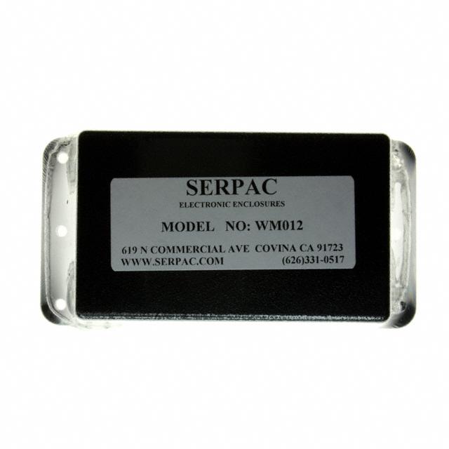 This is manufactured by Serpac. The manufacturer part number is WM012,BK. It is rated with ip40, nema 1. The product is made from highly stable and reliable plastic, abs. It is assigned with possible HTSUS value of 3923.10.9000. The product is rohs3 compliant. It is 0.100" (2.54mm) thick. Features a typical area dimensions of 8.10in² (52.3cm²). In addition, it is reach unaffected. A type of box container. It carries ul94 hb of material flammability rating. The product's diameters include 3.600" l x 2.250" w (91.44mm x 57.15mm). It has a long 2 weeks standard lead time. Shipping Information: shipped from digikey. Its typical moisture sensitivity level is not applicable. The splendid features of the product include mounting flange, pcb supports, wall mount. The typical product's weight is 0.15 lb (68.04 g). It has a classic black colour. The product wm, is a highly preferred choice for users. In addition, the height is 1.600" (40.64mm). In addition, box is the available packaging type of the product. Design Information: cover included. Moreover, it corresponds to wm012, a base product number of the product. The product is designated with the ear99 code number.