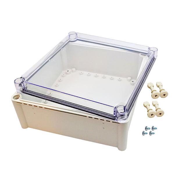 This is manufactured by Bud Industries. The manufacturer part number is PTS-25342-C. It is rated with ip67, nema 4x,6, ul-508. The product is made from highly stable and reliable plastic, fiberglass/polyester, polycarbonate. It is assigned with possible HTSUS value of 3923.10.9000. The product is rohs3 compliant. It is 0.118" (3.00mm) thick. Features a typical area dimensions of 122in² (787cm²). In addition, it is reach unaffected. A type of box container. It carries ul94 v-0 of material flammability rating. The product's diameters include 11.024" l x 11.024" w (280.00mm x 280.00mm). It has a long 11 weeks standard lead time. Shipping Information: shipped from digikey. Its typical moisture sensitivity level is not applicable. The splendid features of the product include flame retardant, pcb supports, sealing gasket. The typical product's weight is 1.9 lbs (861.8 g). It has a classic gray, clear cover/door colour. The product pts, is a highly preferred choice for users. In addition, the height is 5.039" (128.00mm). In addition, bulk is the available packaging type of the product. Design Information: cover included. The product is designated with the ear99 code number.