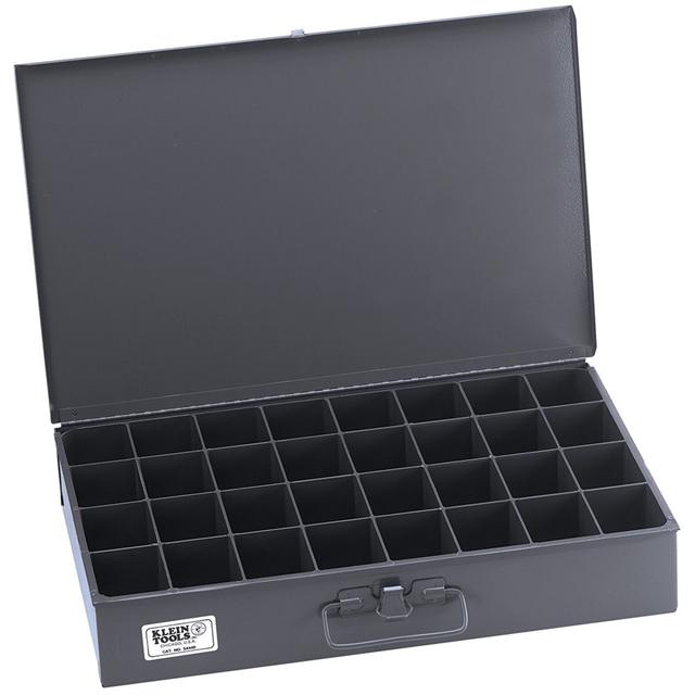 This is manufactured by Klein Tools, Inc.. The manufacturer part number is 54448. The product is made from highly stable and reliable metal, steel. It is assigned with possible HTSUS value of 7310.29.0065. The product is not applicable. Features a typical area dimensions of 216in² (1394cm²). A type of component storage container. The product's diameters include 17.992" l x 12.008" w (457.00mm x 305.00mm). Shipping Information: shipped from digikey. Its typical moisture sensitivity level is not applicable. The splendid features of the product include compartments/drawers - 32. The typical product's weight is 8 lbs (3.6 kg). It has a classic gray colour. In addition, the height is 2.992" (76.00mm). In addition, bulk is the available packaging type of the product. Design Information: hinged door, lid. The product is designated with the ear99 code number.