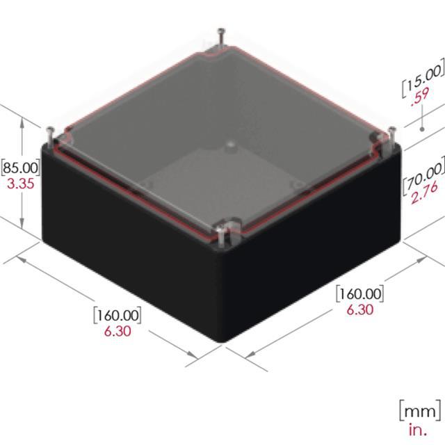 This is manufactured by Serpac. The manufacturer part number is RB66P06C28B. It is rated with ip67, nema 4. The product is made from highly stable and reliable plastic, polycarbonate. It is assigned with possible HTSUS value of 3923.10.9000. The product is rohs3 compliant. It is 0.120" (3.05mm) thick. Features a typical area dimensions of 39.7in² (256cm²). In addition, it is reach unaffected. A type of box container. It carries ul94 v-0 of material flammability rating. The product's diameters include 6.300" l x 6.300" w (160.02mm x 160.02mm). It has a long 2 weeks standard lead time. Its typical moisture sensitivity level is not applicable. It has a classic black, clear cover/door colour. The product rb, is a highly preferred choice for users. In addition, the height is 3.350" (85.09mm). In addition, bulk is the available packaging type of the product. Design Information: cover included. Moreover, it corresponds to rb66p06c, a base product number of the product. The product is designated with the ear99 code number.