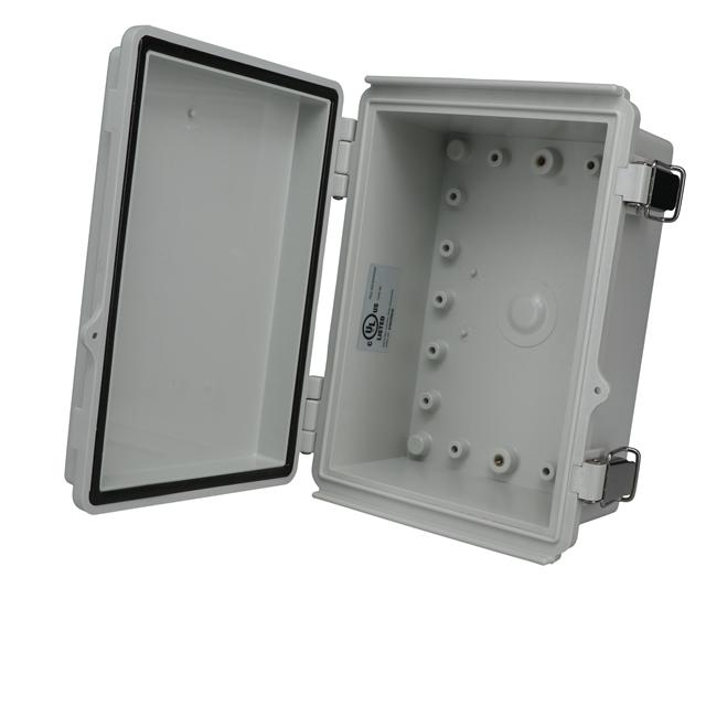 This is manufactured by Bud Industries. The manufacturer part number is PTQ-11044. It is rated with ip67, nema 1,2,4,4x,6, ul-508. The product is made from highly stable and reliable plastic, fiberglass/polyester, polycarbonate. It is assigned with possible HTSUS value of 3923.10.9000. The product is rohs3 compliant. It is 0.130" (3.30mm) thick. Features a typical area dimensions of 38.6in² (249cm²). In addition, it is reach unaffected. A type of box container. It carries ul94 v-0 of material flammability rating. It is shipped in box package . The product's diameters include 7.280" l x 5.310" w (184.91mm x 134.87mm). It has a long 12 weeks standard lead time. Its typical moisture sensitivity level is 1 (unlimited). It has a classic gray colour. The product ptq, is a highly preferred choice for users. In addition, the height is 3.350" (85.09mm). Design Information: hinged door, lid. The product is designated with the ear99 code number.