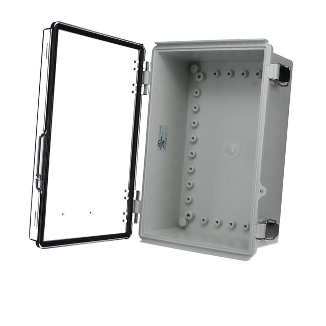 This is manufactured by Bud Industries. The manufacturer part number is PTQ-11058-C. It is rated with ip67, nema 1,2,4,4x,6, ul-508. The product is made from highly stable and reliable plastic, fiberglass/polyester, polycarbonate. It is assigned with possible HTSUS value of 3923.10.9000. The product is rohs3 compliant. It is 0.130" (3.30mm) thick. Features a typical area dimensions of 92.9in² (600cm²). In addition, it is reach unaffected. A type of box container. It carries ul94 v-0 of material flammability rating. It is shipped in box package . The product's diameters include 11.810" l x 7.870" w (299.97mm x 199.90mm). It has a long 12 weeks standard lead time. Its typical moisture sensitivity level is 1 (unlimited). It has a classic gray, clear cover/door colour. The product ptq, is a highly preferred choice for users. In addition, the height is 5.120" (130.05mm). Design Information: hinged door, lid. The product is designated with the ear99 code number.