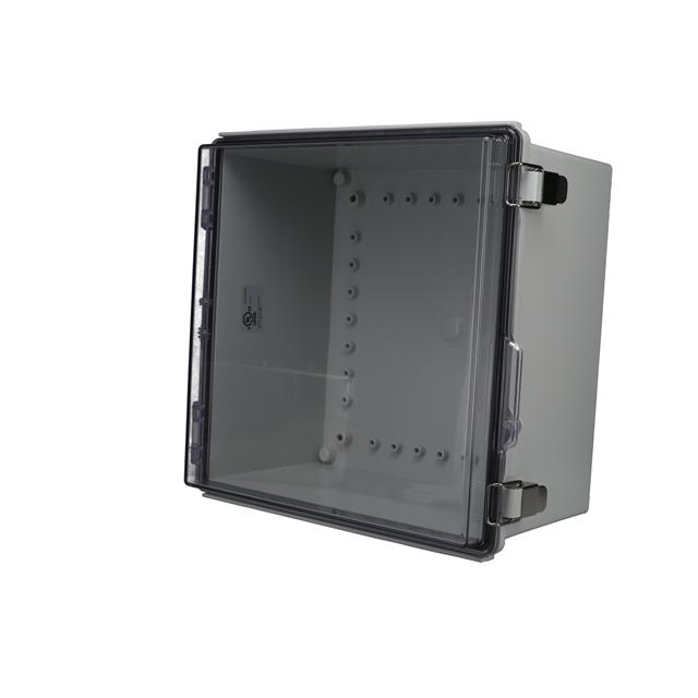 This is manufactured by Bud Industries. The manufacturer part number is PTQ-11066-C. It is rated with ip67, nema 1,2,4,4x,6, ul-508. The product is made from highly stable and reliable plastic, fiberglass/polyester, polycarbonate. It is assigned with possible HTSUS value of 3923.10.9000. The product is rohs3 compliant. It is 0.130" (3.30mm) thick. Features a typical area dimensions of 139in² (900cm²). In addition, it is reach unaffected. A type of box container. It carries ul94 v-0 of material flammability rating. It is shipped in box package . The product's diameters include 11.810" l x 11.810" w (299.97mm x 299.97mm). It has a long 12 weeks standard lead time. Its typical moisture sensitivity level is 1 (unlimited). It has a classic gray, clear cover/door colour. The product ptq, is a highly preferred choice for users. In addition, the height is 7.090" (180.09mm). Design Information: hinged door, lid. The product is designated with the ear99 code number.