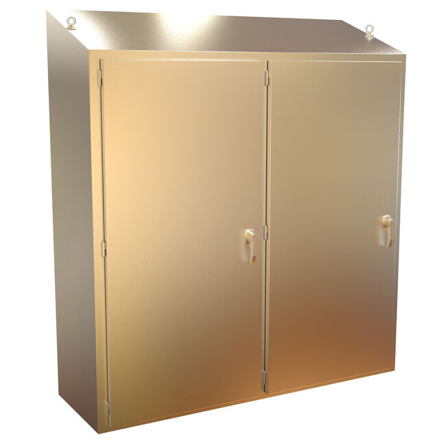This is manufactured by Hammond Manufacturing. The manufacturer part number is 2STFSD747524S16. It is rated with ip66, nema 3r,4,4x,12,13, ul-508a. The product is made from highly stable and reliable metal, stainless steel. The product is rohs3 compliant. It is 12 gauge thick. Features a typical area dimensions of 1814in² (1.170m²). In addition, it is reach unaffected. A type of box container. The product's diameters include 75.130" l x 24.130" w (1908.30mm x 612.90mm). It has a long 5 weeks standard lead time. Its typical moisture sensitivity level is not applicable. It has a classic natural colour. The product 2stfsd, is a highly preferred choice for users. In addition, the height is 82.910" (2105.91mm). In addition, bulk is the available packaging type of the product. Design Information: hinged door.