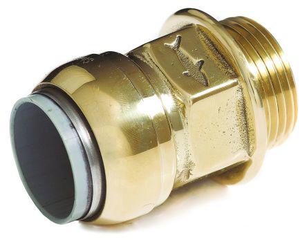 This is Reliance SharkBite Straight Connector 22mm x 3/4 in BSP Male manufactured by Sharkbite. The manufacturer part number is SB112220MP-S. It has about 22mm push fit pipe size . The product is made from highly stable and reliable brass. The fitting direction is straight . The threaded is a bsp standard. In addition, male is the available "Gender" of the product. This threaded adapter tool is easy to use with versatile applications in various settings. It has a typical thread size of 3/4in. The threaded connection is 3/4 in bsp male. It has a demountable characteristic yes .