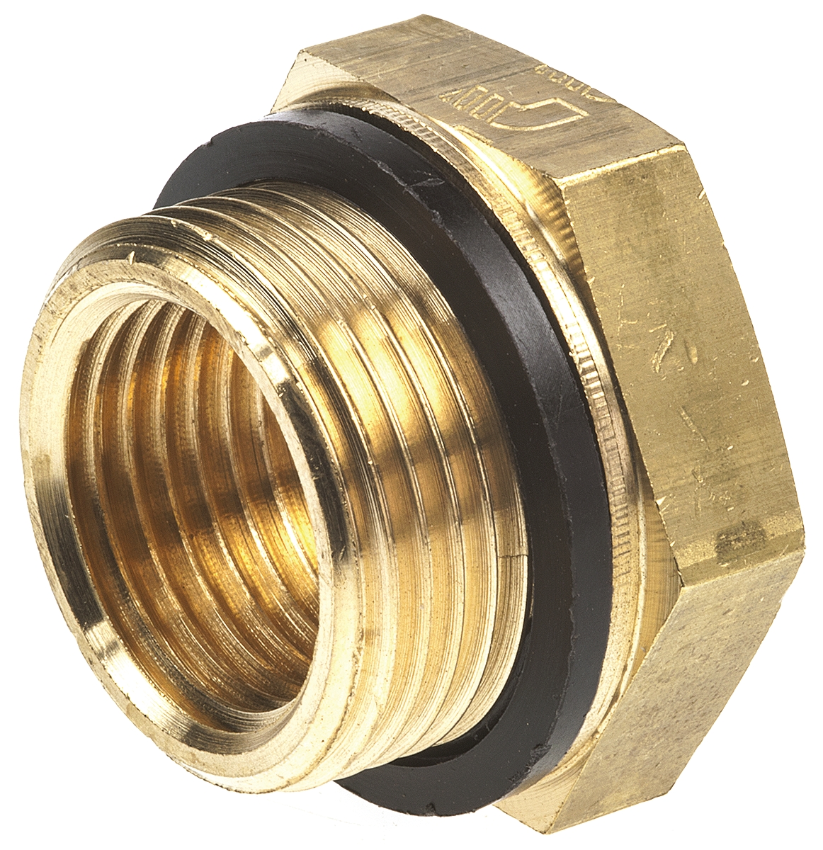 This is Brass 3/4 in BSPP Male x 1/2 in BSPP Female Straight Reducer Threaded Fitting manufactured by Legris. The manufacturer part number is 0168 27 21.