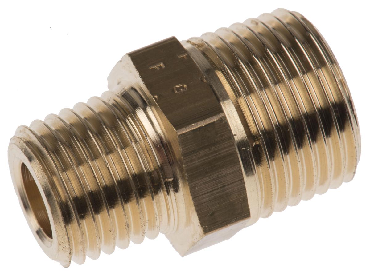 This is Brass 3/8 in BSPT Male x 1/4 in BSPT Male Straight Adapter Threaded Fitting manufactured by Legris. The manufacturer part number is 0121 17 13. The product is made from highly stable and reliable brass. The fitting direction is straight . This adapter tool is easy to use with versatile applications in various settings. It has a standard 1/4in thread size 2 . It has a standard 3/8in thread size 1 . Additionally, its pipe fitting connection is of threaded type . In addition, its connection is of male gender 2 . Moreover, its thread is of r standard 2 . Its connection 1 is of male gender . In addition, it has a thread of r standard 1 .