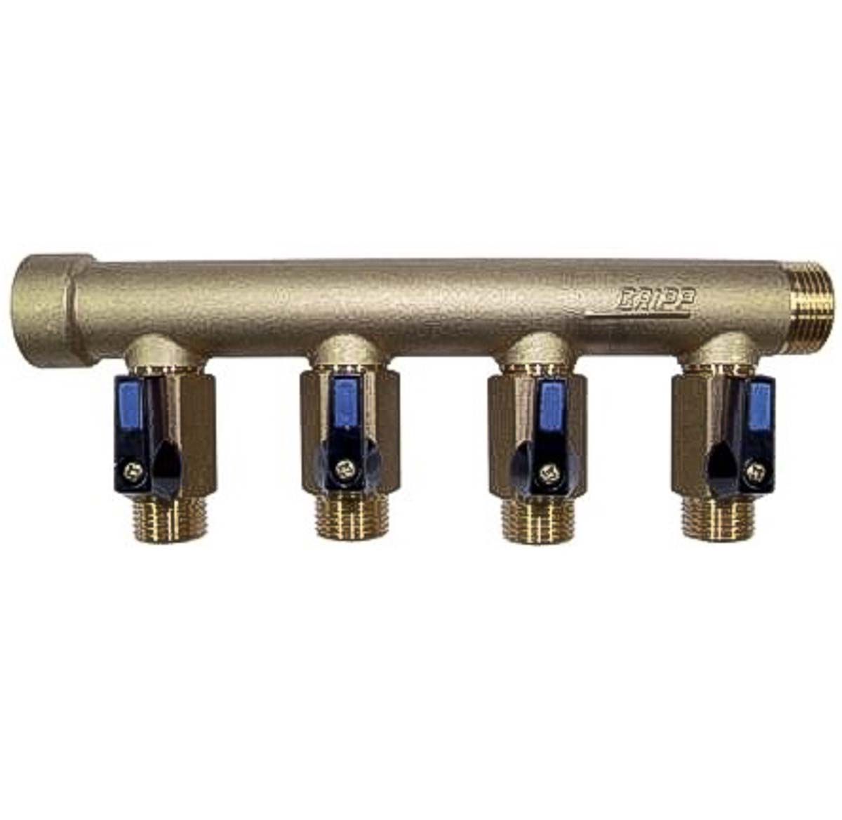 This is Manifold MF3/4'' 6 outlets with valve M1 manufactured by Watts. The manufacturer part number is 003637. The product is made from highly stable and reliable brass. The fitting direction is straight . This manifold tool is easy to use with versatile applications in various settings. It has a standard 1/2in thread size 2 . Additionally, it has approximately 3/4in thread size 3 . It has a standard 3/4in thread size 1 . Additionally, its pipe fitting connection is of compression type . Its connection 1 is of male gender . In addition, its connection is of male gender 2 . Additionally, it has a connection of female gender 3 .