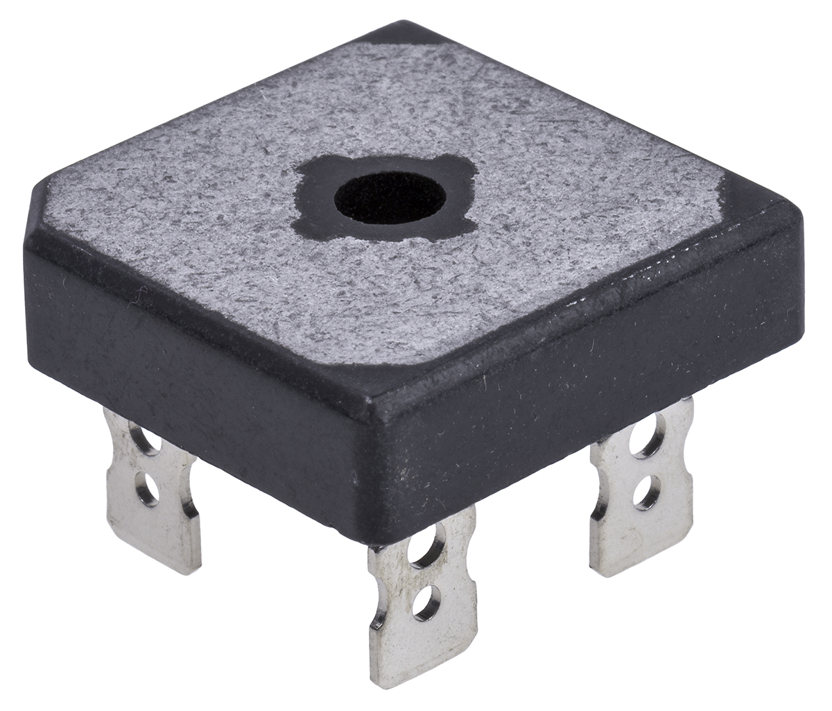 This is Bridge Rectifier 25A 1000V 4-Pin GBPC-A manufactured by Vishay. The manufacturer part number is VS-GBPC2510A. It has a typical 5µa peak reverse current . The given dimensions of the product include 28.6 x 28.6 x 7.7mm. It contains a/an single phase type bridge . Moreover, a bespoke product has 420a peak non-repetitive forward surge current. Additionally, it has about 25a of peak average forward current . In addition, the height is 7.7mm. Whereas, the peak forward voltage is about 1.1v . Furthermore, the product is 28.6mm wide. Its accurate length is 28.6mm. The package is a sort of gbpc-a. While having the peak reverse repetitive 1000v. Whereas, the minimum operating temperature of the product is -55 °c. The product is available in screw mount configuration. The product is available in single configuration. It has a maximum operating temperature of +150 °c. It contains 4 pins.