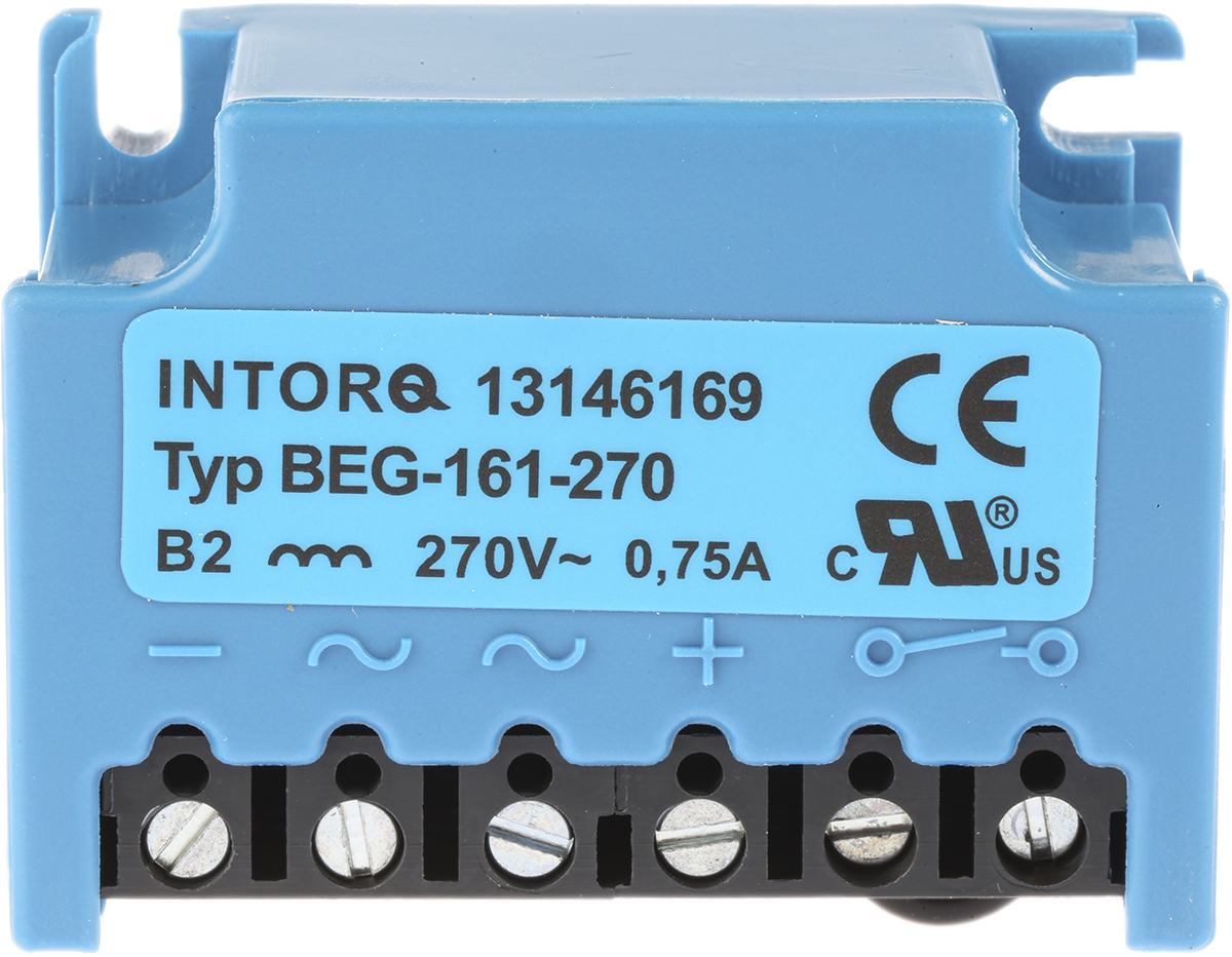 Spring-Applied Brake - INTORQ BFK458 Spring applied brakes to 60Nm torque Very robust - suitable for dynamic or static operation Factory preset torque, supplied with pilot bore hub Brakes asbestos free and adjustable for wear Suitable rectifiers and replacement rotors available Includes Friction Plate 205 V 'N' means adjustable torque Note * maximum possible bore size with keyway