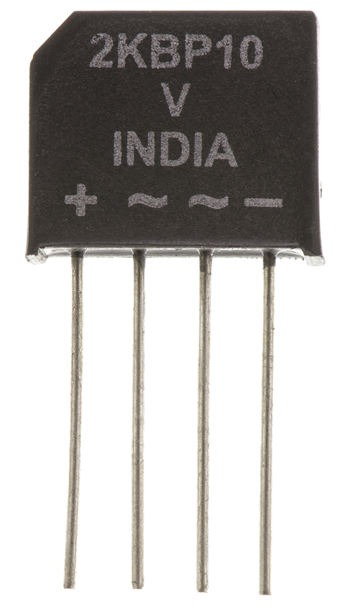 This is Bridge Rectifier 2A 1000V 4-Pin D 44 manufactured by Vishay. The manufacturer part number is VS-2KBP10. It has a typical 10µa peak reverse current . The given dimensions of the product include 17.5 x 6.8 x 15mm. It contains a/an single phase type bridge . Moreover, a bespoke product has 63a peak non-repetitive forward surge current. Additionally, it has about 2a of peak average forward current . In addition, the height is 15mm. Whereas, the peak forward voltage is about 1v . Furthermore, the product is 6.8mm wide. Its accurate length is 17.5mm. The package is a sort of d 44. While having the peak reverse repetitive 1000v. Whereas, the minimum operating temperature of the product is -40 °c. The product is available in through hole configuration. The product is available in single configuration. It has a maximum operating temperature of +150 °c. It contains 4 pins.