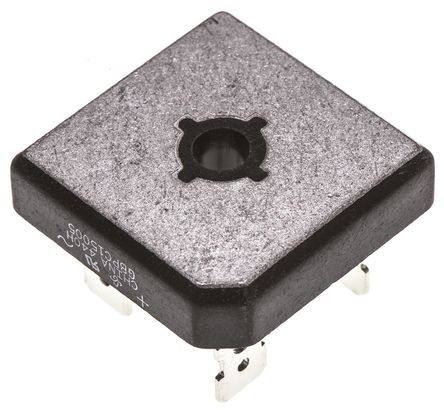 This is Bridge Rectifier 25A 100V 4-Pin GBPC manufactured by Vishay. The manufacturer part number is GBPC2501-E4/51. It has a typical 5µa peak reverse current . The given dimensions of the product include 28.8 x 28.8 x 7.87mm. It contains a/an single phase type bridge . Moreover, a bespoke product has 300a peak non-repetitive forward surge current. Additionally, it has about 25a of peak average forward current . It has a junction capacitance of 300pf . In addition, the height is 7.87mm. Whereas, the peak forward voltage is about 1.1v . Furthermore, the product is 28.8mm wide. Its accurate length is 28.8mm. The package is a sort of gbpc. While having the peak reverse repetitive 100v. Whereas, the minimum operating temperature of the product is -55 °c. The product is available in through hole configuration. The product is available in single configuration. It has a maximum operating temperature of +150 °c. It contains 4 pins.