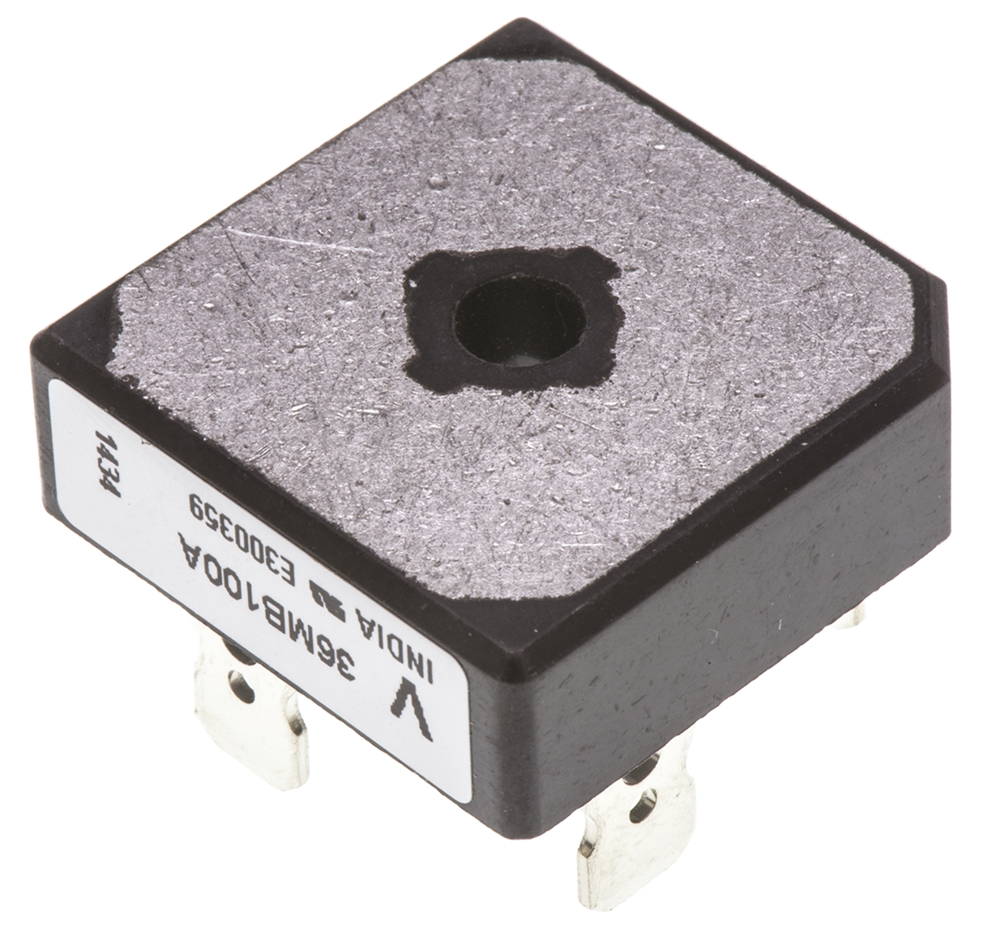 This is Bridge Rectifier 35A 1000V 4-Pin D 34 manufactured by Vishay. The manufacturer part number is VS-36MB100A. It has a typical 10µa peak reverse current . The given dimensions of the product include 28.5 x 28.5 x 9.8mm. It contains a/an single phase type bridge . Moreover, a bespoke product has 500a peak non-repetitive forward surge current. Additionally, it has about 35a of peak average forward current . In addition, the height is 9.8mm. Whereas, the peak forward voltage is about 1.14v . Furthermore, the product is 28.5mm wide. Its accurate length is 28.5mm. The package is a sort of d 34. While having the peak reverse repetitive 1000v. Whereas, the minimum operating temperature of the product is -55 °c. The product is available in screw mount configuration. The product is available in single configuration. It has a maximum operating temperature of +150 °c. It contains 4 pins.