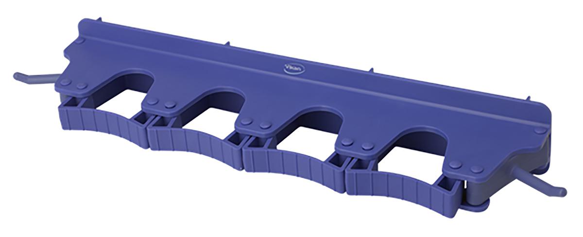 This is Tool Flex Wall bracket 4-6 Products Pu manufactured by Vikan. The manufacturer part number is 10188. The product is available in wall configuration. It has a decent purple colour. The product is made from highly stable and reliable polypropylene. Furthermore, the product is 80mm wide. The product is for food industry usage . It is FDA compliant yes . Additionally, it has 4 tools held . Additionally, it has a clip type attachment .