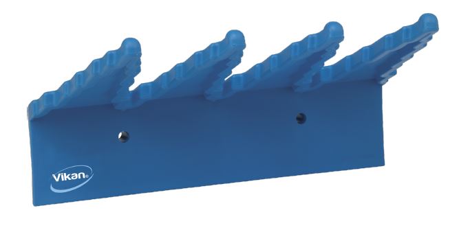 This is Mop Holder Blue manufactured by Vikan. The manufacturer part number is 06153. Furthermore, the product is 170mm wide. It has a decent blue colour. The product is made from highly stable and reliable polypropylene. Additionally, it has 4 tools held . Additionally, it has a hanging type attachment .