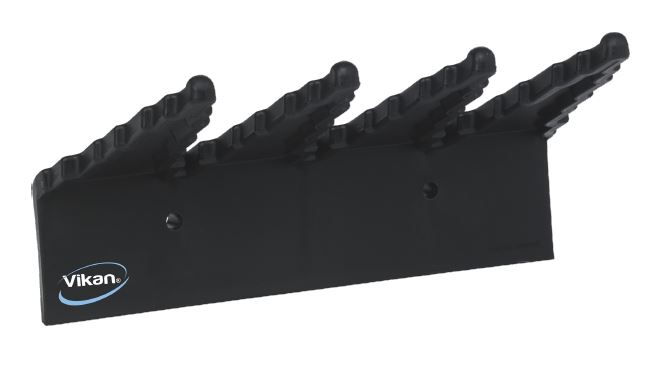 This is Mop Holder Black manufactured by Vikan. The manufacturer part number is 06159. Furthermore, the product is 170mm wide. It has a decent black colour. The product is made from highly stable and reliable polypropylene. Additionally, it has 4 tools held . Additionally, it has a hanging type attachment .