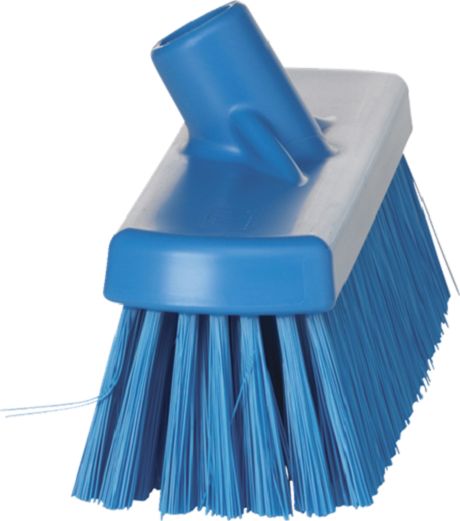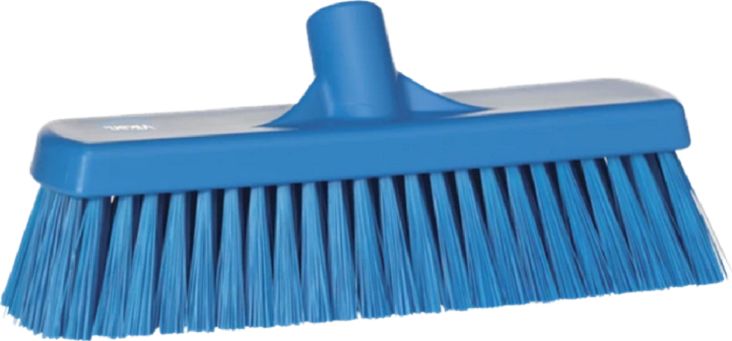 The Vikan sturdy broom can effectively remove medium dirt and food particles in both dry and damp environments , ideal for use in smaller food production areas. Can be used with any vikan handle. Material used is Polypropylene Polyester Stainless Steel (AISI 304) Visible bristle length is 60mm Bristle stiffness is medium Length of broom is 300 mm Width is 90 mm Height is 130 mm
