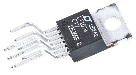 This is Step-Down Switching Regulator manufactured by Linear Technology. The manufacturer part number is LT1074CT7#PBF. Additionally, the product is supplied with 1 outputs. The given dimensions of the product include 10.54 x 4.57 x 9.4mm. The product is available in through hole configuration. Its output voltage (maximum) includes 50 v. It has a maximum operating temperature of +70 °c. It has a maximum 110 khz switching frequency. Furthermore, it has aadjustable output. In addition, the height is 9.4mm. It has a switching regulator yes . Furthermore, the product is 4.57mm wide. Its accurate length is 10.54mm. 45 v is the maximum voltage of the bespoke product. The package is a sort of to-220. It has a/an buck controller function regulator . Whereas, the minimum operating temperature of the product is 0 °c. The product features 2.5 v minimum output voltage. The product has 7.3 v of minimum input voltage. Featuring 5a of maximum output current. It contains 7 pins. Has a line regulation of 0.02 %/v.