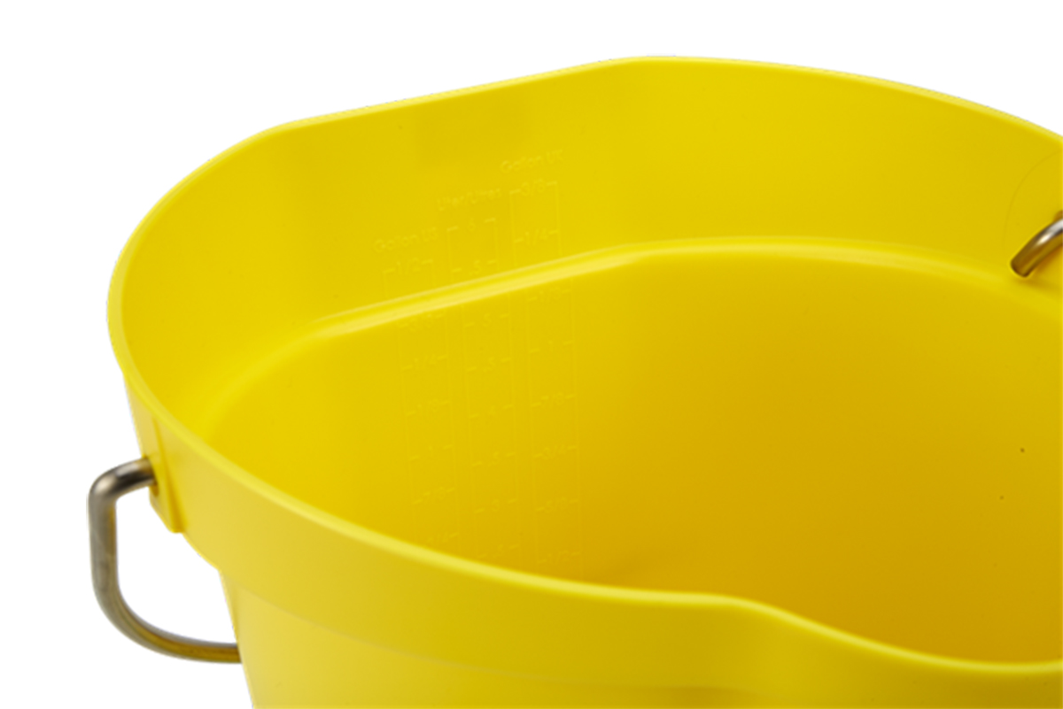 This is 6L Yellow Bucket With Handle manufactured by Vikan. The manufacturer part number is 56886. The module has the capacity of 6l. It has a decent yellow colour. The product is made from highly stable and reliable plastic. It has yes handle .