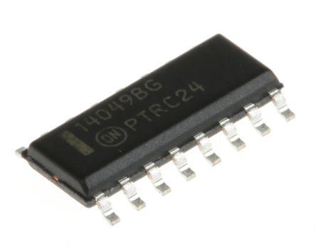 This is Hex Inverting Buffer 16-Pin SOIC manufactured by ON Semiconductor. The manufacturer part number is MC14049BDG. While providing inverting polarity. The given dimensions of the product include 10 x 4 x 1.5mm. The product is available in surface mount configuration. It provides up to 140 ns @ 5 v maximum propagation delay time. While its minimum operating supply voltage is 3 v. Whereas, the minimum operating temperature of the product is -55 °c. The primary function of logic includes buffer, converter. The logic family is 4000. In addition, the height is 1.5mm. Furthermore, the product is 4mm wide. Its accurate length is 10mm. The package is a sort of soic. Features 50pf of propagation delay test condition. It carries single ended input type. Schmitt Trigger Input - no. It is supplied with 6 channels. It has a maximum operating temperature of +125 °c. It contains 16 pins. It has 18 v maximum operating supply voltage.