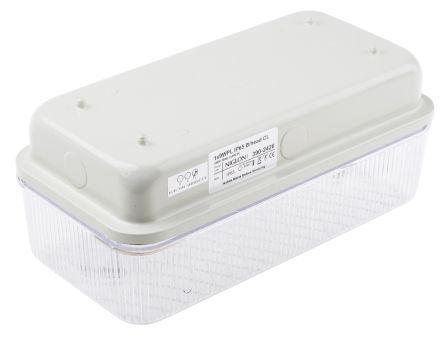 This is 9 W Rectangular Fluorescent Bulkhead light Clear 230 V ac Aluminium IP64 with Clear Diffuser manufactured by RS Pro. The manufacturer part number is 390-2426. It includes a/an rectangular shape lamp . The given dimensions of the product include 245 x 120 x 100 mm. It is IP rated with ip64. It has a maximum operating temperature of +35°c. This product carries 9 w. It has a supplied lamp yes . It is offered with a/an clear diffuser colour . It is a rectangular product with unique specifications. Whereas, the product has a/an clear type diffuser . Moreover, the product has a nominal 230 v ac voltage rating. Furthermore, the product is 120 mm wide. The product comes in 100 mm depth. Its accurate length is 245 mm. Whereas, the minimum operating temperature of the product is -10°c. The product has -10 → +35°c of operating temperature range. It is a type of fluorescent lamp. It comes in wall mount configuration. The casing is constructed from highly stable aluminium material.