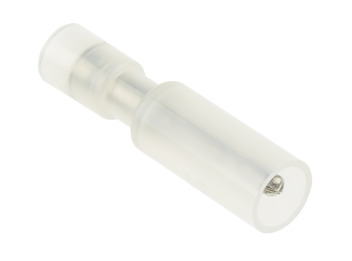 This is NYLON-FULLY INSULATED DOUBLE CRIMP BULLE manufactured by RS PRO. The manufacturer part number is 178-8386. The wire has a maximum size of 0.75mm². It has about 2 mm, 3.5 mm bullet diameter . It has a decent clear colour. While the minimum wire size AWG includes 22awg. It has a robust nylon insulation material. It has an overall length of 27mm. Insulation Option: insulated. Its maximum wires size includes 18awg. On the other hand, the wire has 0.5mm² of minimum size. The product is made from sturdy brass materials.