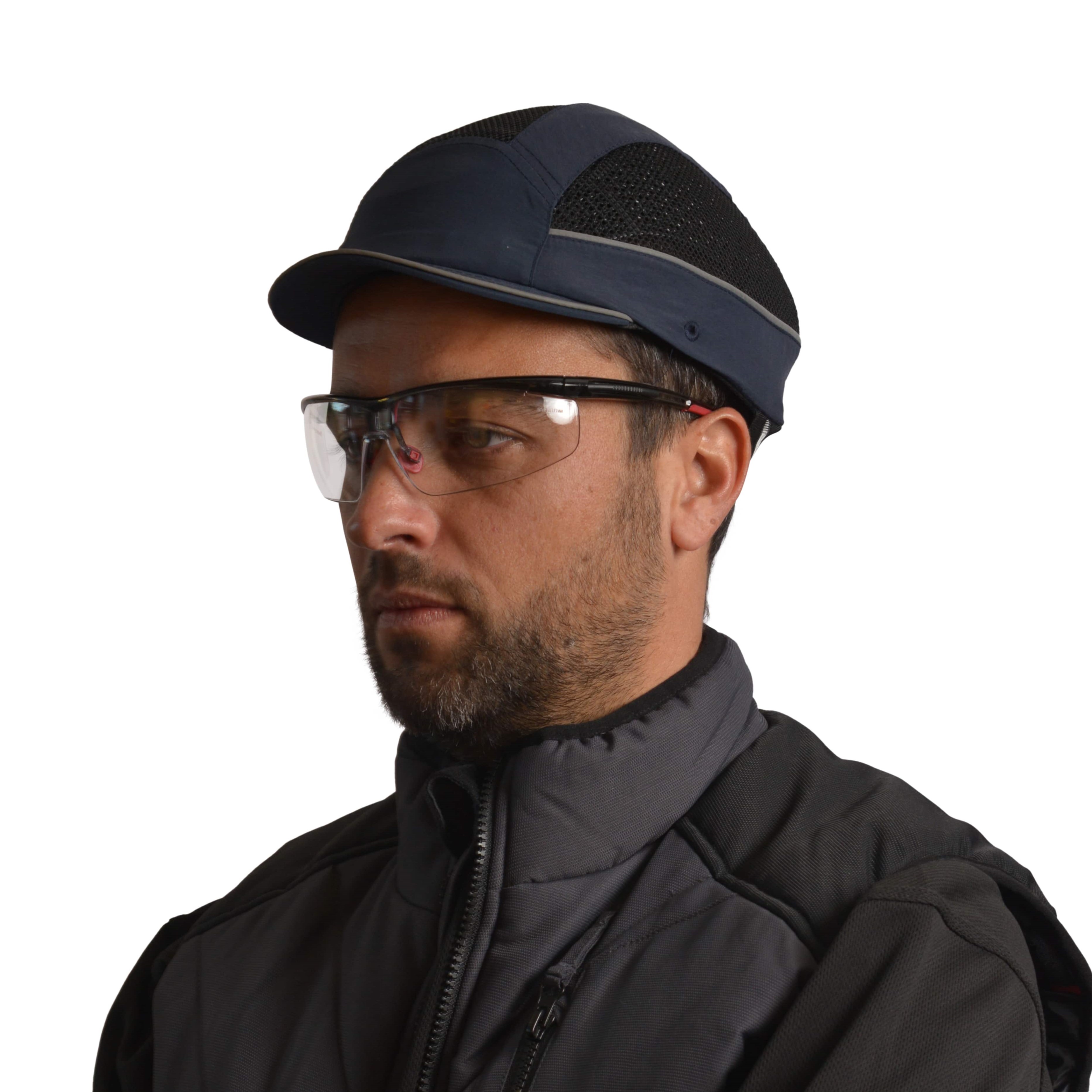 This is Navy Short Peaked Bump Cap PPE Protective Material manufactured by SURFLEX. The manufacturer part number is AIRC02V03STR. It has an adjustable feature yes . It complies with EN812 yes . Its cap is made up of polyester material . It has a washable machine included yes . It has a decent navy colour. It has a short type peak . It has integral sweatband feature yes . The head size includes 56-64cm. It is fully adjustable yes . It has a/an ppe as protective material .