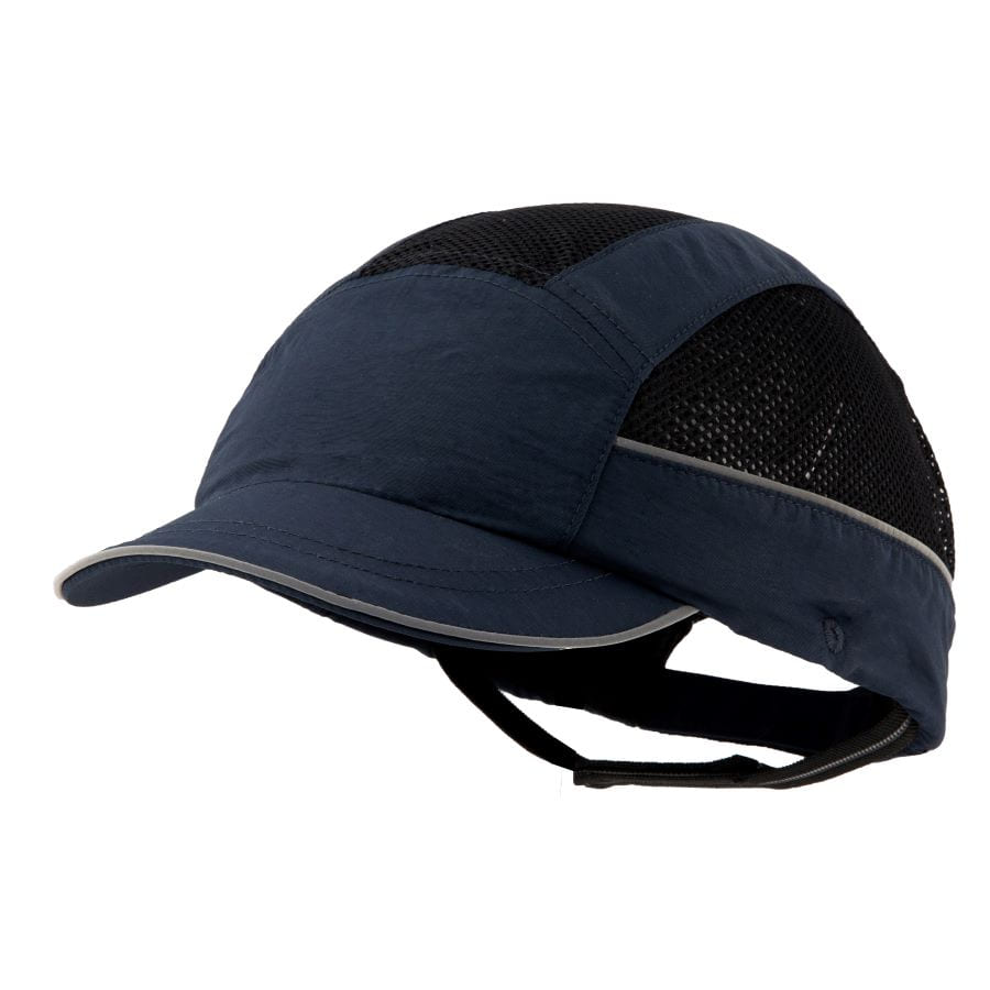 This is Navy Blue Standard Peak Bump Cap PPE Protective Material manufactured by SURFLEX. The manufacturer part number is AIRC02V05STR. It has an adjustable feature yes . It complies with EN812 yes . Its cap is made up of polyester material . It has a washable machine included yes . It has a decent navy blue colour. It has a standard type peak . It has integral sweatband feature yes . The head size includes 56-64cm. It is fully adjustable yes . It has a/an ppe as protective material .