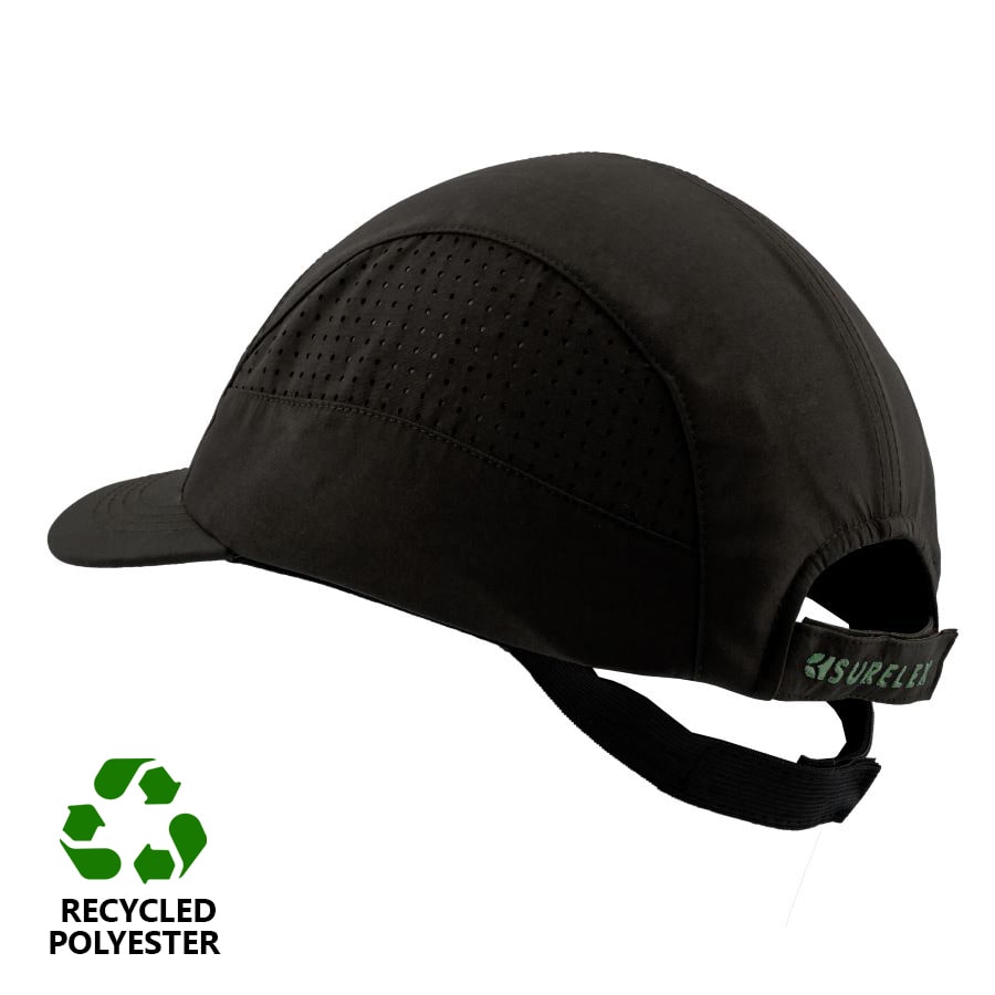This is Black Standard Peak Bump Cap PPE Protective Material manufactured by SURFLEX. The manufacturer part number is ECOC01V05. It has an adjustable feature yes . It complies with EN812 yes . Its cap is made up of polyester material . It has a washable machine included yes . It has a decent black colour. It has a standard type peak . It has integral sweatband feature yes . The head size includes 56-64cm. It is fully adjustable yes . It has a/an ppe as protective material .