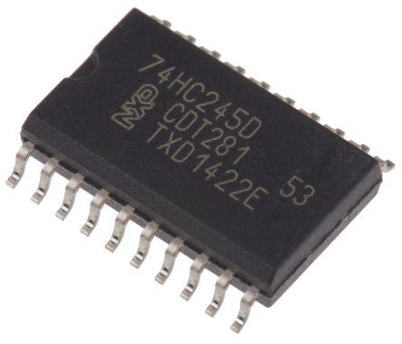 This is Bus Transceiver 8-Bit Non-Inverting 20-Pin SOIC manufactured by Toshiba. The manufacturer part number is 74HC245D. While providing non-inverting polarity. On the other hand, it is featured with 7.8ma of max. low level output current. While a -7.8ma of maximum high level output current. The given dimensions of the product include 13.1 x 7.5 x 2.25mm. The product is available in surface mount configuration. It provides up to 180 ns @ 150 pf maximum propagation delay time. While its minimum operating supply voltage is 2 v. It comprises 8 channels per chip. The logic family is 74hc. In addition, the height is 2.25mm. Furthermore, the product is 7.5mm wide. Its accurate length is 13.1mm. The package is a sort of soic. It consists of 18 elements per chip. Whereas, the minimum operating temperature of the product is -40 °c. It has 6 v maximum operating supply voltage. It has a maximum operating temperature of +125 °c. It contains 20 pins. Features 150pf of propagation delay test condition.