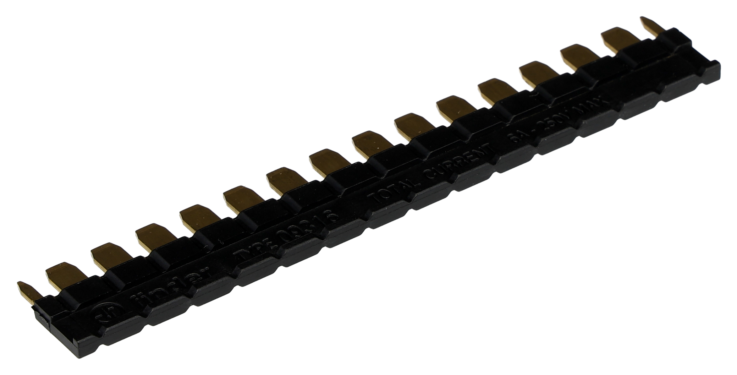 This is Jumper link 16 way black manufactured by Finder. The manufacturer part number is 093.16.0. The product has a current rating of 6 a. The product 93, is a highly preferred choice for users. It has a decent black colour. Its rated operational voltage is 250 v . solid state relay is a versatile product designed to provide user-defined applications.