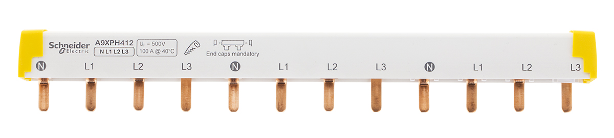 This is 4 Phase Busbar 12 Module 415V 18mm Pitch manufactured by Schneider Electric. The manufacturer part number is A9XPH412. Better World Verification Options - green premium. Is it a better world product? yes. The product has a current rating of 100a. The product ic60, is a highly preferred choice for users. It has a decent white colour. Its electrical phase configuration includes 3. It features acti 9 range. Moreover, the product is 18mm. The product is highly suitable for ic60, ik60, iid, iid k, isw, isw-na. Its rated operational voltage is 415v ac .