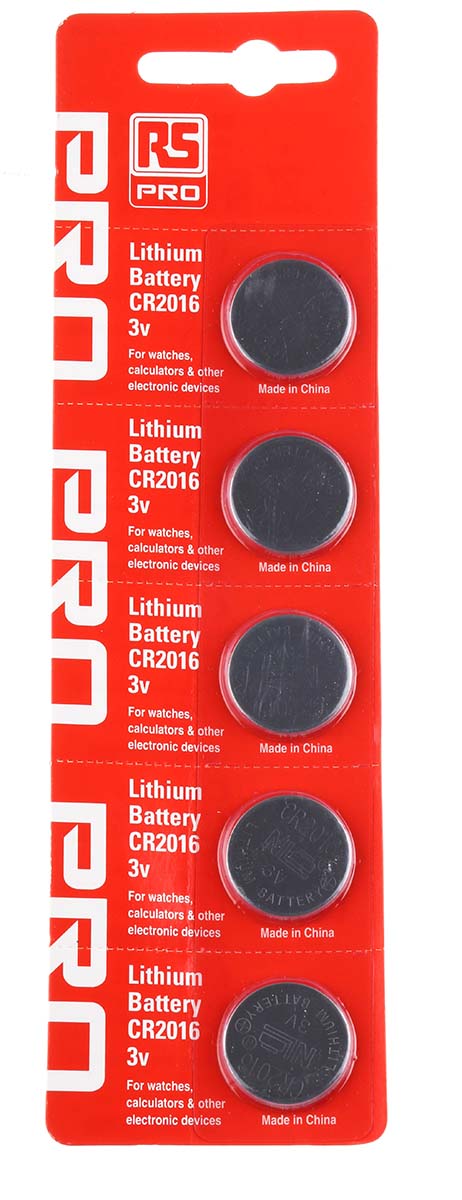 This is CR2016 3V Lithium Manganese Dioxide Coin Button Battery manufactured by RS Pro. The manufacturer part number is 866-0669. Its diameter is 20mm. The quantity of the pack is 5 . The module has the capacity of 90mah. The given dimensions of the product include 20 x 1.6mm. The product cr, is a highly preferred choice for users. It has a model number cr2016. The nominal voltage of the product is 3v. It has a/an lithium manganese dioxide chemistry . The terminal is a standard type. The product is available in cr2016 size.