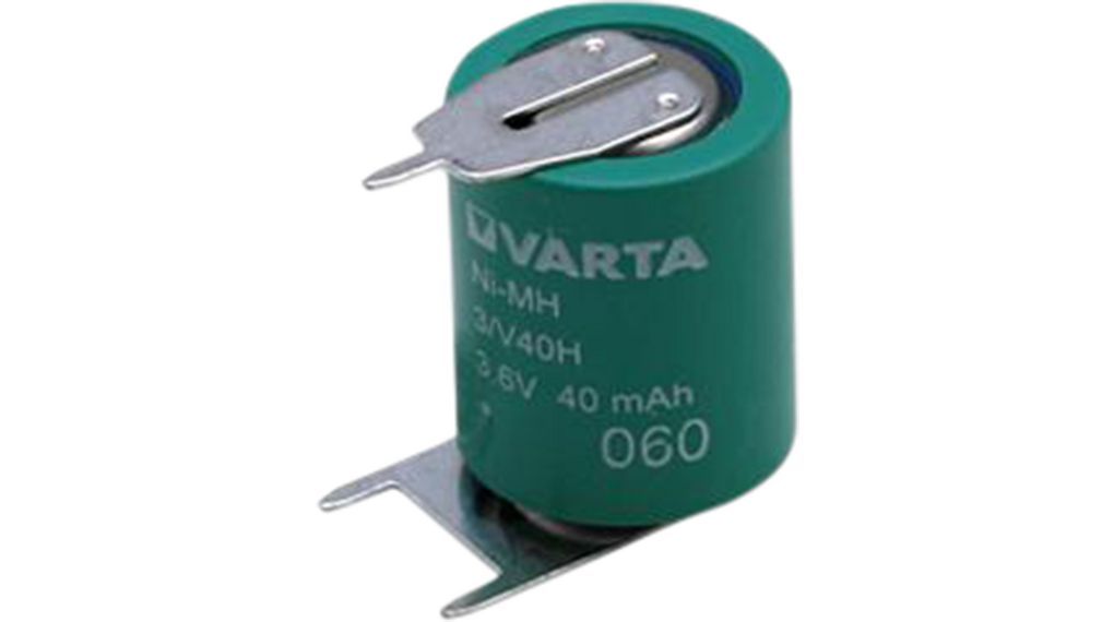 This is Button cell battery pack 3.6V 40mAh manufactured by Varta. The manufacturer part number is 3/V40H S SLF.