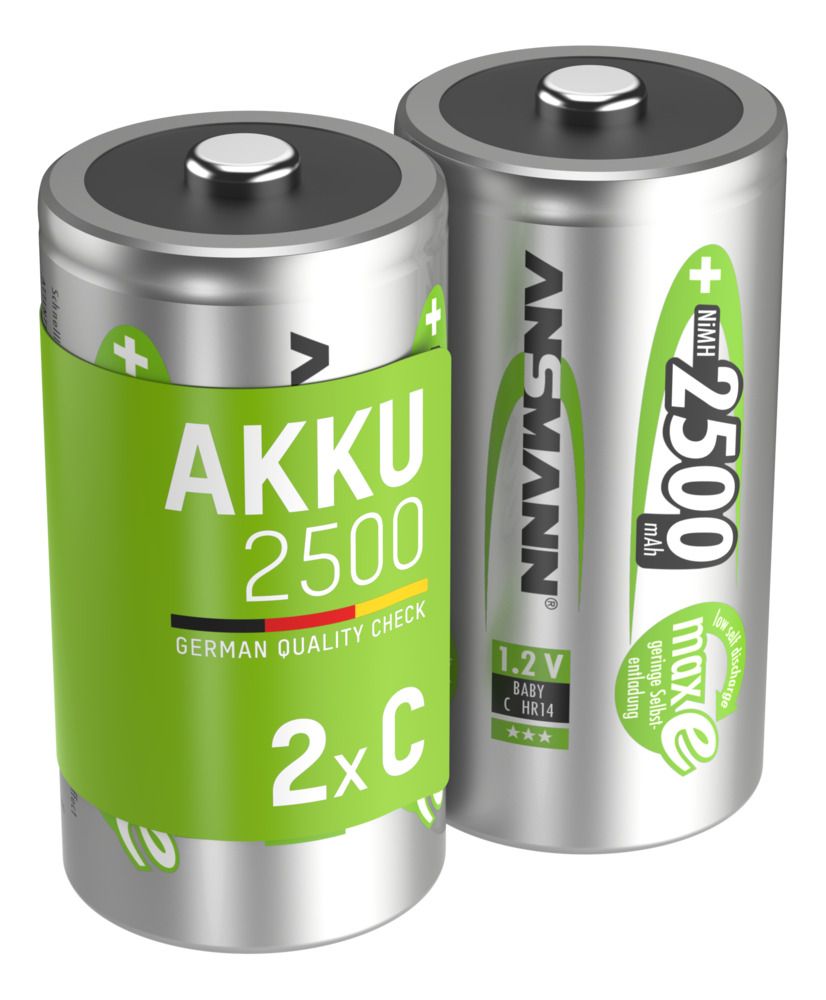 This is NiMH Rechargeable C Batteries 2.5Ah manufactured by Ansmann. The manufacturer part number is 5030912. It has about 2.5ah battery capacity . rechargeable c battery is a versatile product designed to provide user-defined applications. Whereas, the minimum operating temperature of the product is -20°c. The typical product's weight is 60g. The product ansmann maxe, is a highly preferred choice for users. In addition, the height is 50mm. The product is designed with a standard termination. The nominal voltage of the product is 1.2v. It has a/an nickel metal hydride chemistry . It has a maximum operating temperature of 50°c.